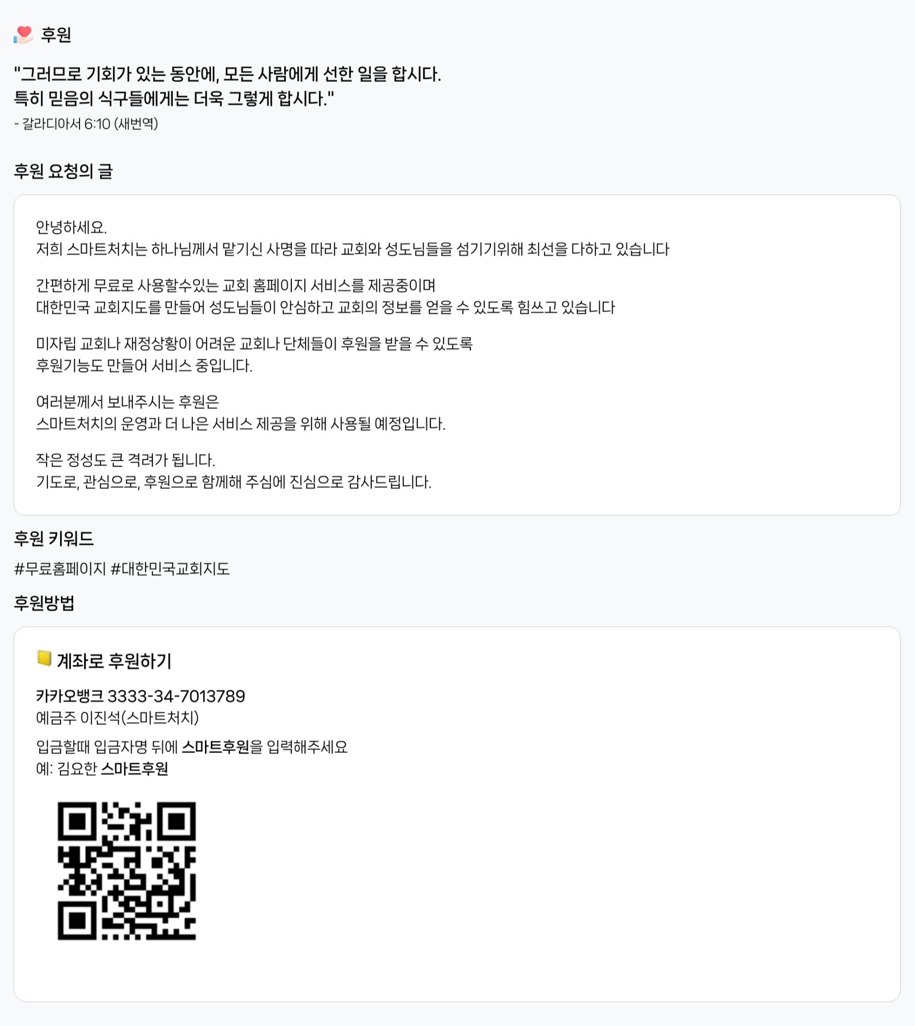 후원 키워드에 미자립교회 등 후원을 이끌어낼수 있는 키워드로 작성해 주시면 됩니다