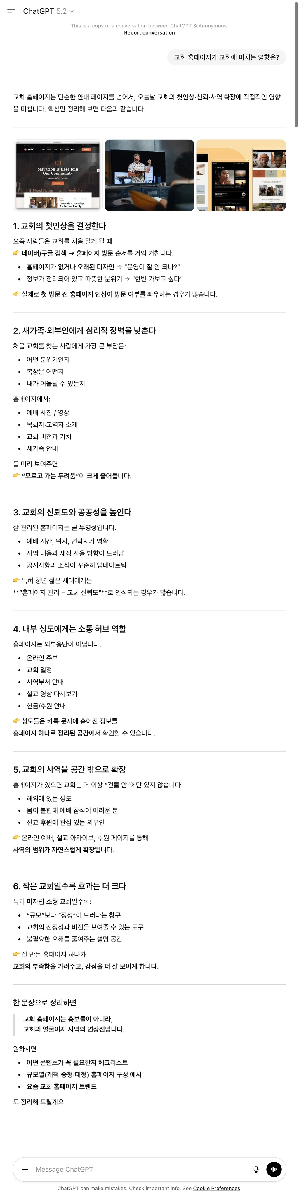 Chat GPT에게 물어본 교회 홈페이지가 교회에 미치는 영향