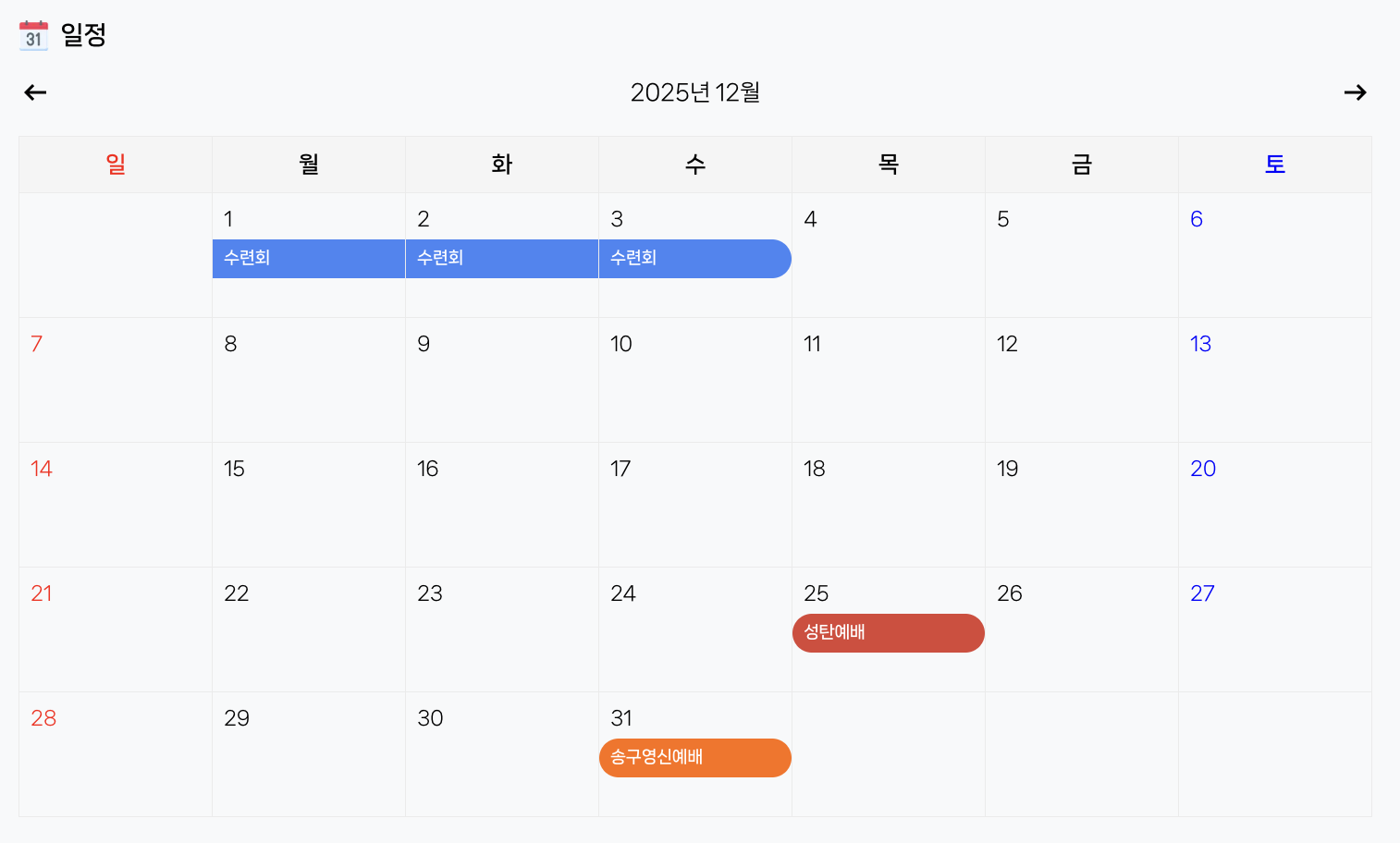 교회 일정 기능이 새롭게 추가 되었습니다.